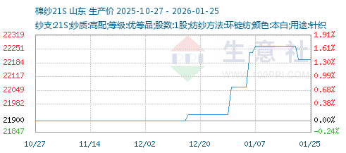 1月23日生意社棉纱21S基准价为22200.00元/吨