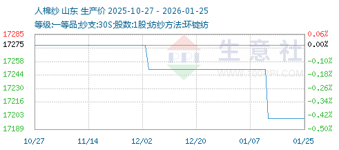 1月22日生意社人棉纱基准价为17200.00元/吨
