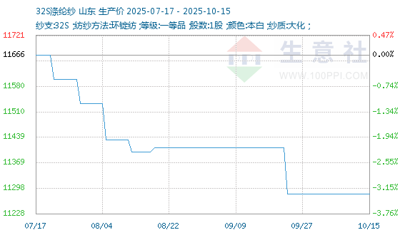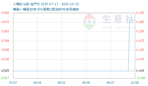 10月11日生意社人棉纱基准价为17225.00元/吨